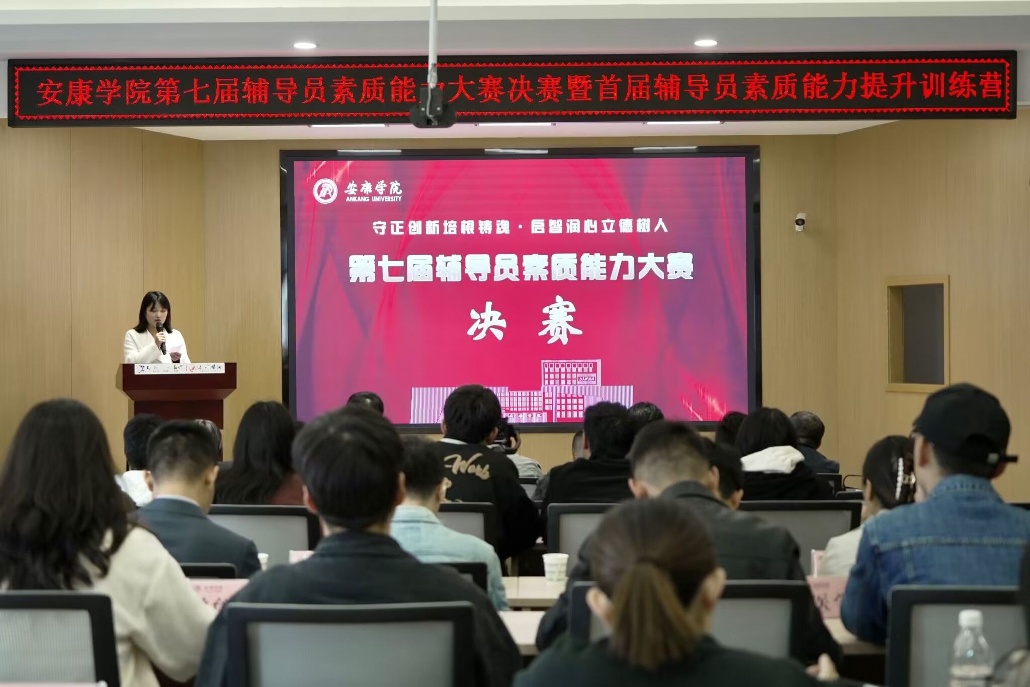 本次大赛分为初赛和决赛两个阶段,初赛采用基础知识测试的形式,从46名辅导员中遴选6名辅导员进入决赛角逐一二等奖。决赛包括案例分析和谈心谈话两个环节,全面考察辅导员对学生特征、成长成才规律的掌握程度及分析问题、研判问题、解决问题、应急处突等能力。参赛辅导员全方位展示了个人素养、知识储备和专业技能,充分彰显了辅导员队伍良好的专业素养和育人风采以及担当实干、追求卓越的精神品质。