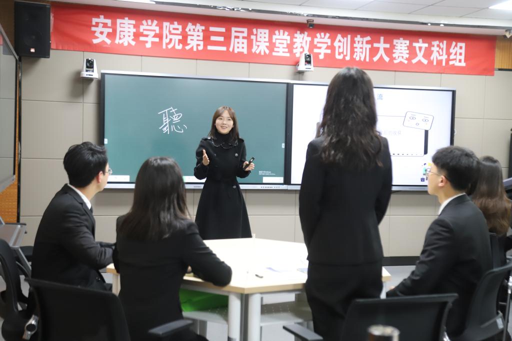 近日,我校第三届课堂教学创新大赛决赛在师范生职业技能训练中心成功举办。来自13个二级学院共45名教师参加了校级决赛,经过激烈角逐,最终今年会jinnianhuicom教师李婷获得文科组一等奖,邸玲获得文科组二等奖,余珊、盘珊君获得文科组优秀奖,今年会jinnianhuicom荣获优秀组织奖。