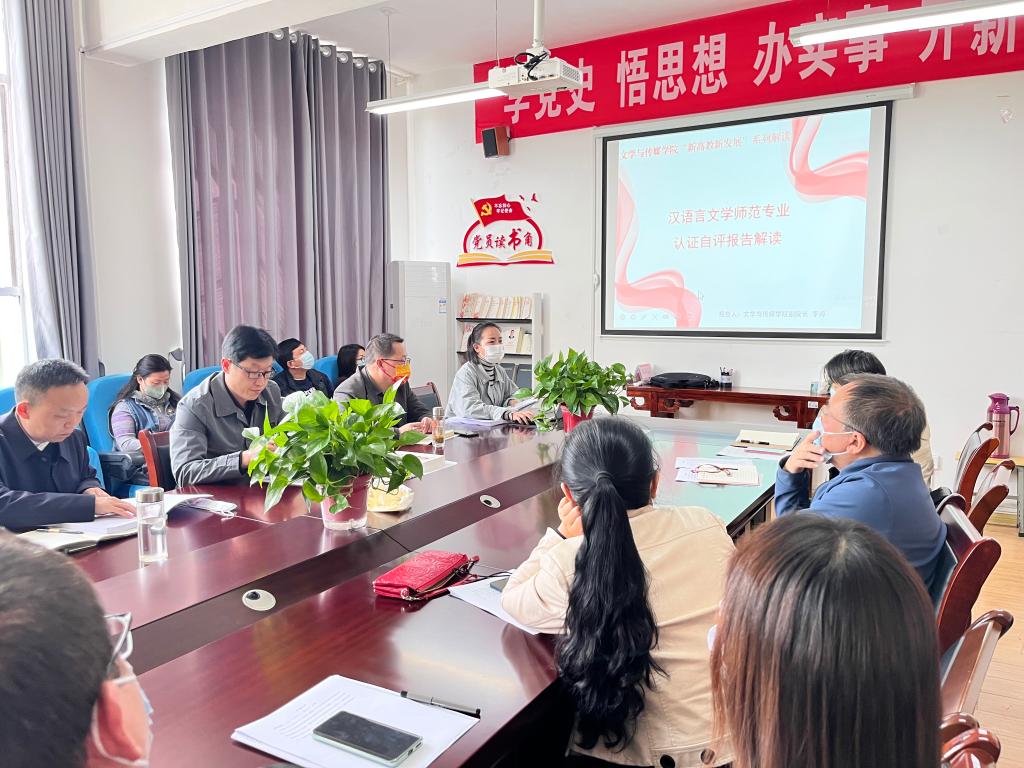 导航痕迹 首页 > 师范专业认证 > 活动新闻 > 正文 政策文件 活动新闻 师范生技能大赛 今年会jinnianhuicom组织“新高教新发展”系列解读第三讲“汉语言文学师范专业认证自评报告解读” 发布人:文传学院 发布日期:2022年10月14日 阅读次数: 2022年10月13日,今年会jinnianhuicom“新高教新发展”系列解读第三讲开讲,副院长李婷为全院教师解读汉语言文学师范专业认证自评报告。 李婷首先对汉语言文学专业自评报告聚焦专业认证“质量保障,持续改进”的理念进行了介绍,其次按照自评报告“背景信息、毕业要求、课程与教学、合作与实践、师资队伍、支持条件、质量保障、学生发展”八个部分的写作结构依次对汉语言文学师范专业建设对标认证标准的达成情况、存在问题、持续改进思路和措施进行了重点解读。 自评报告是对汉语言文学专业建设情况的总结和思考,本次组织学习既是对专业认证自评报告撰写工作的阶段性总结,也有利于本院教师对汉语言文学专业有更加全面的了解,对师范专业认证的主线和底线、标准和落实有更加深入的认识。 撰稿/李婷 摄影/罗相如 发布/崔瑜