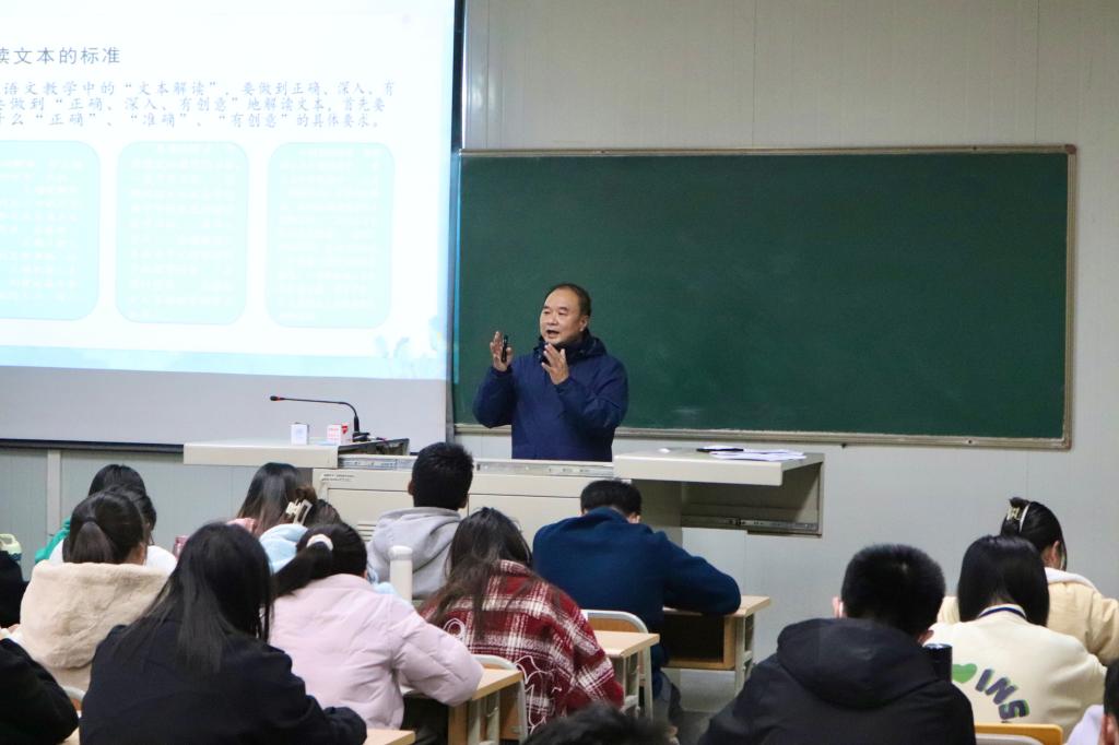 11月18下午安康市汉滨区教学研究室李玉恒老师为汉语言文学专业2020级学生带来“初中语文阅读教学文本面面观专题讲座。