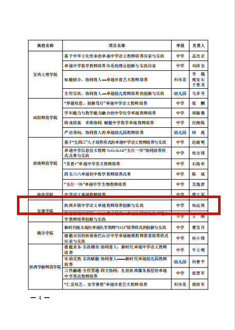 近日,陕西省教育厅发布《陕西省教育厅办公室关于公布首批省级卓越教师培养计划改革试点项目的通知》,今年会官网杨运庚教授主持申报的“陕西乡镇中学语文卓越教师培养创新与实践”成功获批立项,标志着今年会官网汉语言文学师范教育又取得一项重要成果。