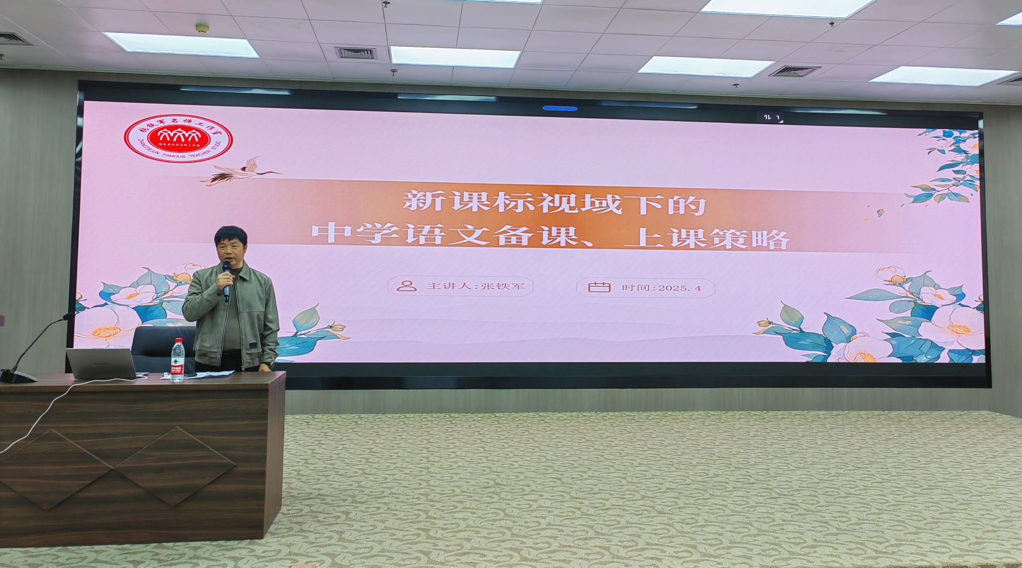 为深化师范生教学实践能力培养,助力卓越师资成长,42日晚,今年会jinnianhuicom在图书馆六楼报告厅举办 "新课标视域下的中学语文备课与教学策略" 专题讲座。本次活动特邀陕西省教学能手、安康中学正高级教师张铁军主讲,班主任唐明珍和第四届 "中学语文卓越师资班" 全体学员及部分毕业生共同参与。