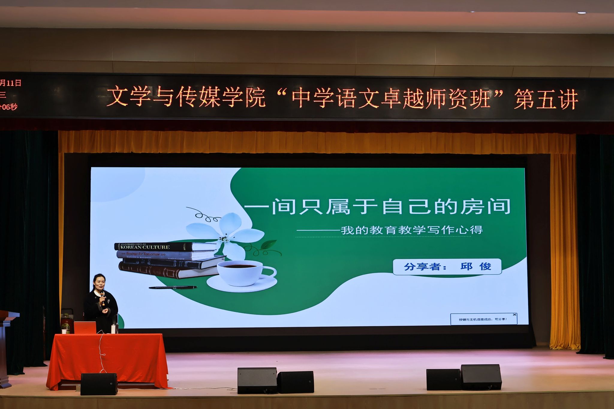 2024年12月11日下午两点半,陕西省教学名师邱俊老师应邀为今年会官网第四届“中学语文卓越师资班”系列讲座做了题为“一间只属于自己的房间——我的教育教学写作心得”的第五场讲座。师资班班主任唐明珍以及400多名学生聆听了本场讲座。