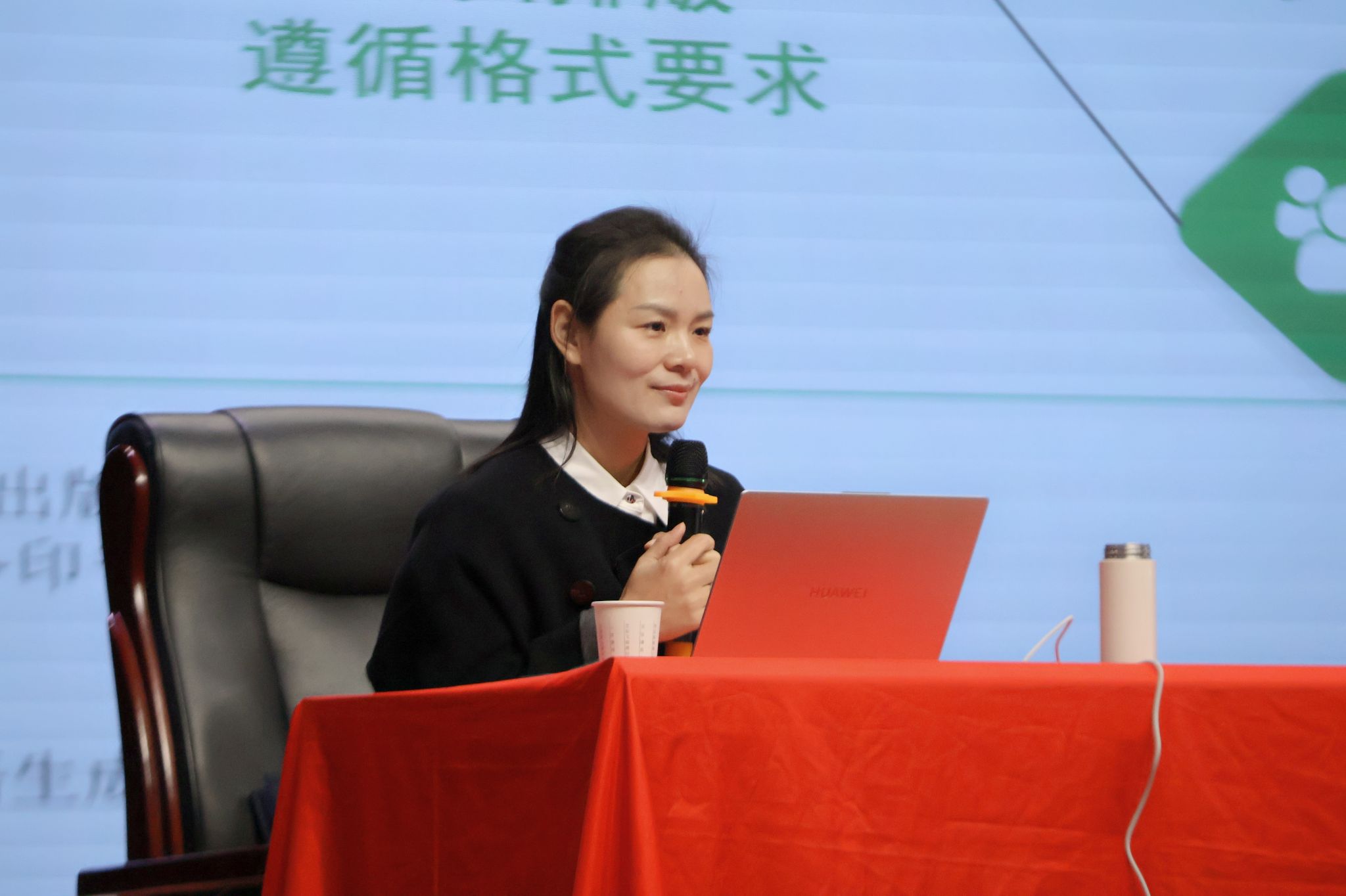 紧接着,邱老师围绕“本我的觉醒:我想写;自我的重塑:我会写;超我的从容:我爱写”三个部分展开。讲座中,邱老师指出教育写作就是把自己的灵魂安顿在校园里、安放在课堂里,是对校园和课堂的深度思考。教师通过记录每堂课的互动和学生的成长瞬间,将这些宝贵的教育片段化为思想结晶,不断反思和探寻教育真谛。她提到教师应树立问题意识、探究意识,重视研究成果的系统梳理与总结提炼,促进个人从专业型教师发展为研究型教师。